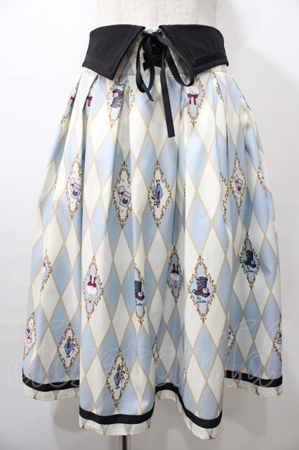 axes femme kawaii / ダイヤ柄襟付きスカート M サックス Y-25-08-11-065-AX-SK-SZ-ZH