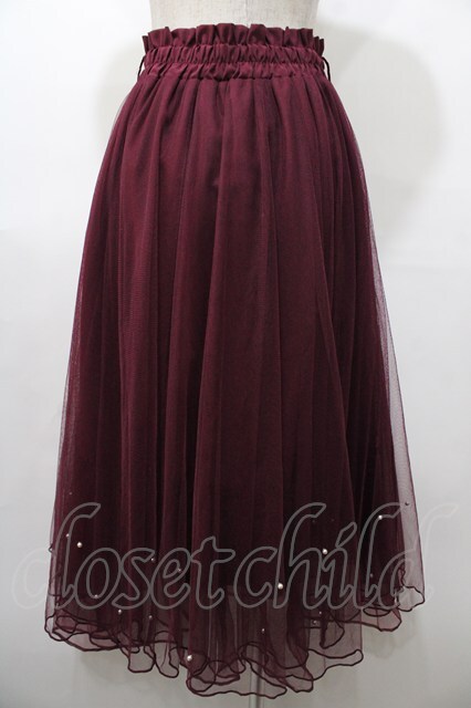 axes femme POETIQUE / パールデザインチュールスカート M ワイン Y-25-08-11-069-AX-SK-SZ-ZI