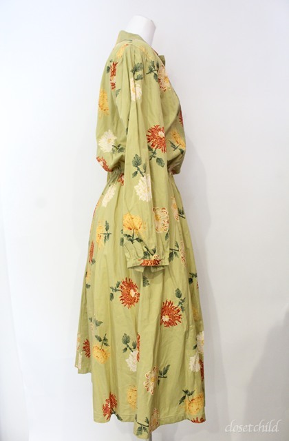 KETTY / 菊柄ワンピース M グリーン O-25-08-10-057-EL-OP-OW-ZI