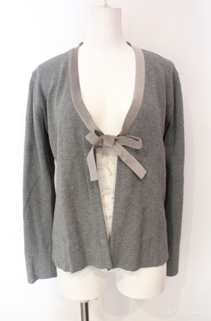 KANEKO ISAO / ベロアリボン切り替えニットボレロ グレー O-25-08-10-019-EL-TO-OW-ZI
