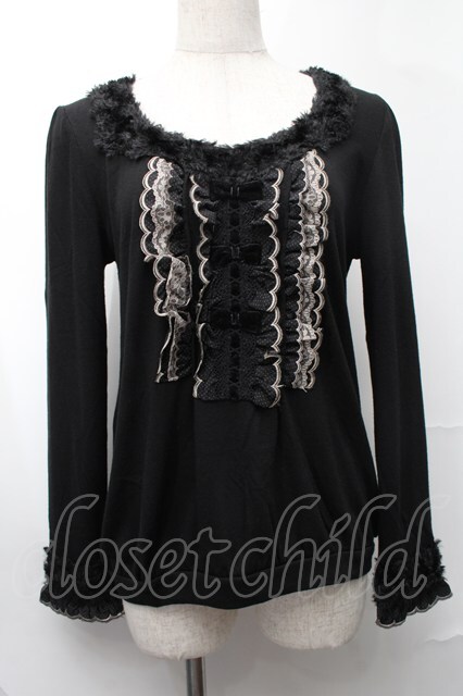 axes femme / リボンプルオーバー 黒 S-25-08-09-032-AX-TO-HR-ZS