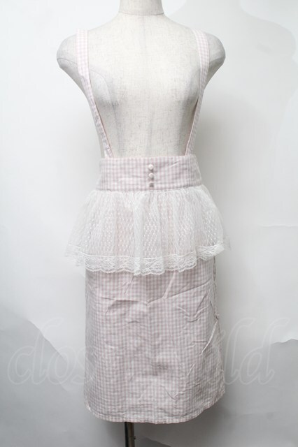 Ank Rouge / ギンガムサス付きペプラムスカート ピンク S-25-08-09-058-CA-SK-AS-ZT477