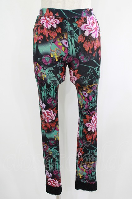 Ozz oneste / 裾レースプリントレギンス 黒 H-25-08-17-1009-OO-PA-KB-ZH