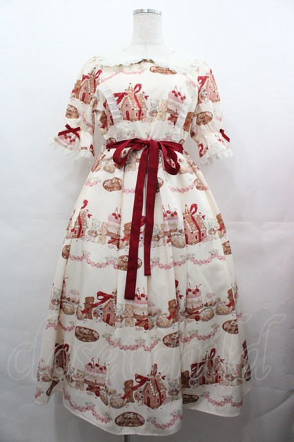 axes femme kawaii / お菓子の家柄ワンピース M 生成り I-25-08-09-068-AX-BL-HD-ZT497 [戻る]