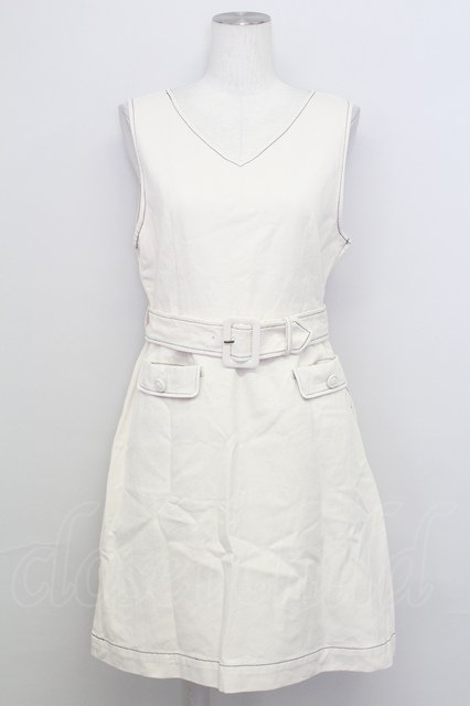 F i.n.t / 太ベルトVネックデニムジャンパースカート オフホワイト T-25-08-12-019-CA-OP-SA-ZI