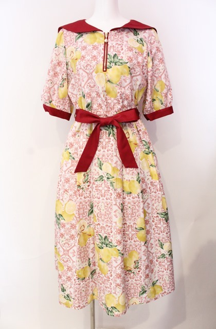 axes femme / レモン×タイル柄セーラーワンピース アカ O-25-08-11-061-AX-OP-IG-ZT262 [戻る]