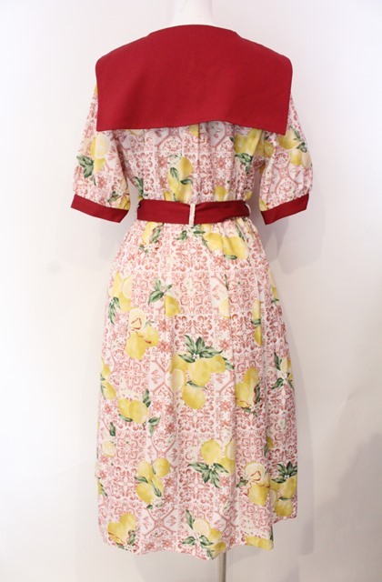 axes femme / レモン×タイル柄セーラーワンピース アカ O-25-08-11-061-AX-OP-IG-ZT262