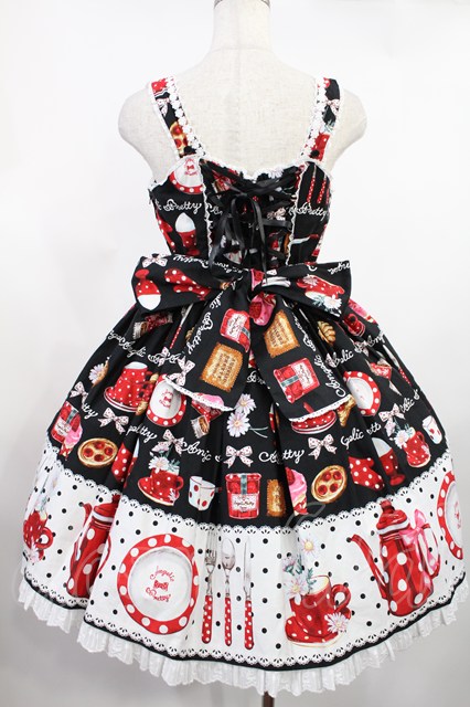 Angelic Pretty / French Cafe切替ジャンパースカート Free ブラック H-25-08-11-1002-AP-OP-NS-ZH