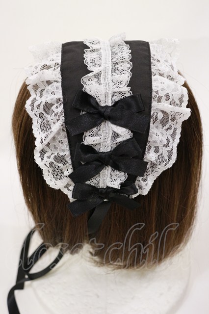 metamorphose / 無地ラッセルレースつきヘッドドレス ブラック/オフ H-25-08-18-1004-ME-AC-NS-ZH