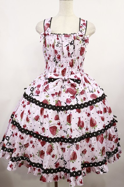metamorphose / 【プラスサイズ】Lady Fruit シャーリングティアードジャンパースカート プラスサイズ ピンク H-25-08-18-1015-ME-OP-NS-ZH