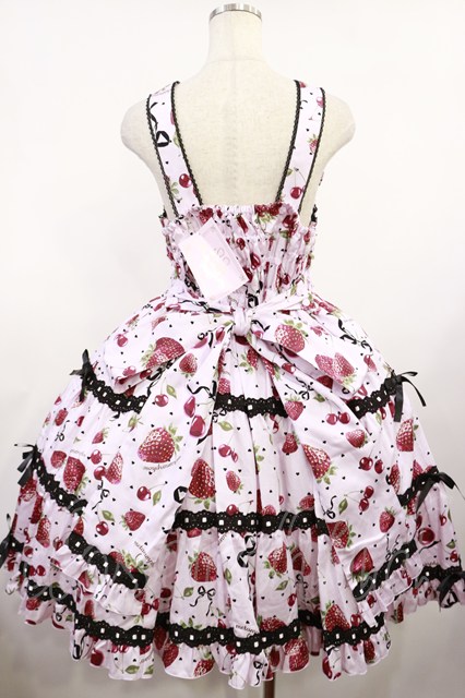 metamorphose / 【プラスサイズ】Lady Fruit シャーリングティアードジャンパースカート プラスサイズ ピンク H-25-08-18-1015-ME-OP-NS-ZH [戻る]