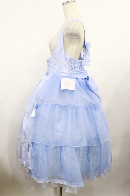 metamorphose / 【プラスサイズ】Mellifluous フロントあきフリルジャンパースカート プラスサイズ サックス H-25-08-18-1013-ME-OP-NS-ZH