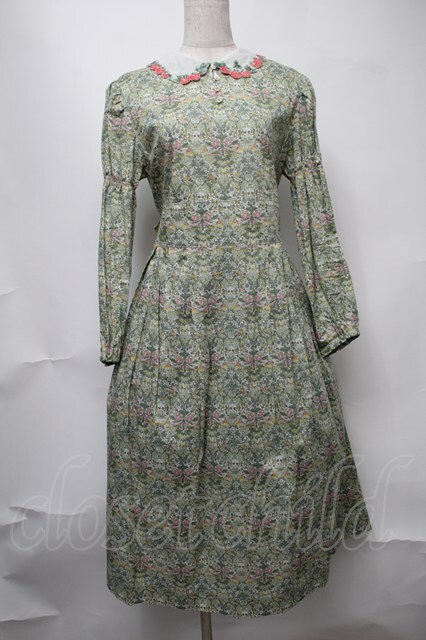 Jane Marple / Liberty William Morris いちご泥棒ワンピース グリーン S-25-08-11-051-JM-OP-AS-ZI [戻る]