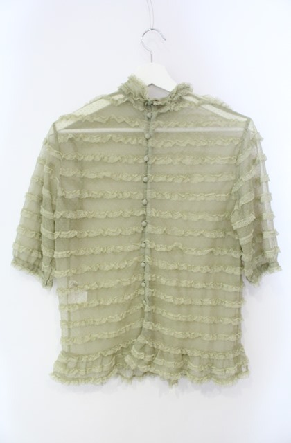 KANEKO ISAO / ピコフリル使いドットチュールブラウス グリーン O-25-08-13-004-EL-TO-OW-ZT1002J