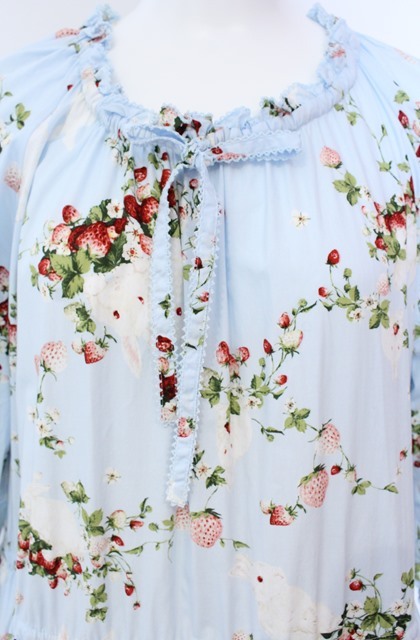 PINK HOUSE / 野いちごの森プリントミディワンピース サックス O-25-08-13-056-LO-OP-IG-ZI