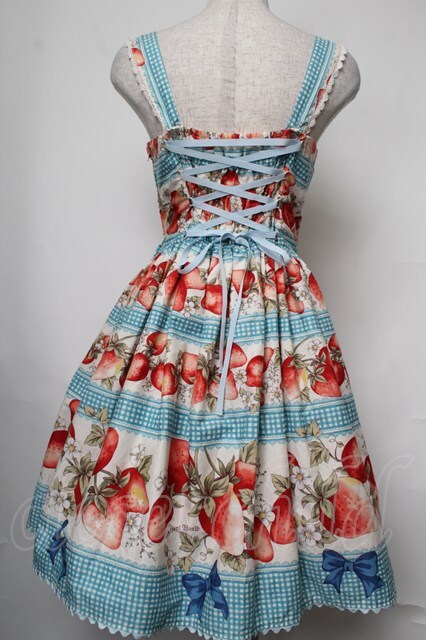 Innocent World / ストロベリーギンガムジャンパースカート サックス S-25-08-13-043-IW-OP-AS-ZS [戻る]