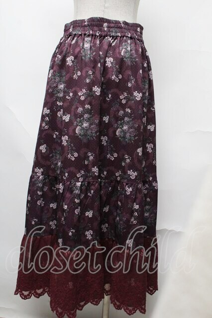 axes femme / ミュルーズ染織美術館コラボ/フェザー×フラワー柄スカート ワイン S-25-08-13-053-AX-SK-AS-ZS