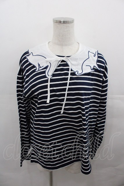 alcali / キャットカラーボーダーカットソー ネイビー I-25-08-13-018-LO-TO-HD-ZI