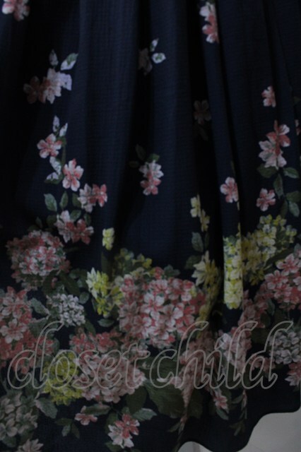 axes femme / あじさい柄ワンピース M 紺 Y-25-08-15-109-AX-OP-SZ-ZT505