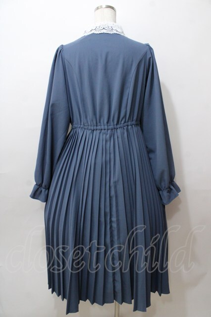 m petit by misako / レース襟プリーツワンピース 青 Y-25-08-15-132-LO-OP-SZ-ZY