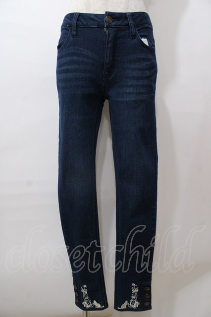 axes femme / ねこ刺繍デニムパギンス S インディゴ Y-25-08-15-170-AX-PA-SZ-ZI