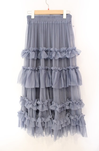 axes femme / フリルチュールティアードスカート ブルーグレー O-25-08-16-073-AX-SK-IG-OS