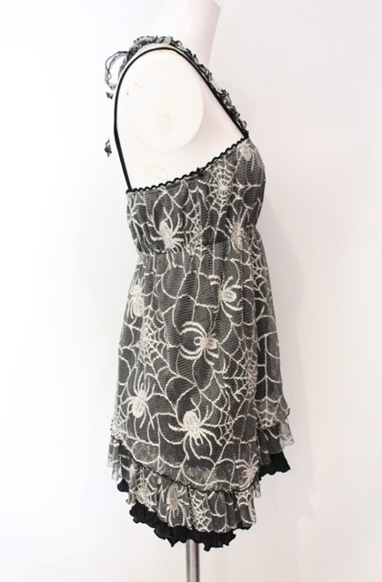 Qutie Frash / 蜘蛛メッシュホルターキャミソール【旧タグ】 ブラック×ホワイト O-25-08-16-009-QU-TO-OW-OS [戻る]