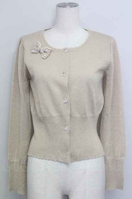 Shirley Temple / ラメニットカーディガン 160CM ベージュラメ T-25-08-16-003-ET-TO-SA-ZI