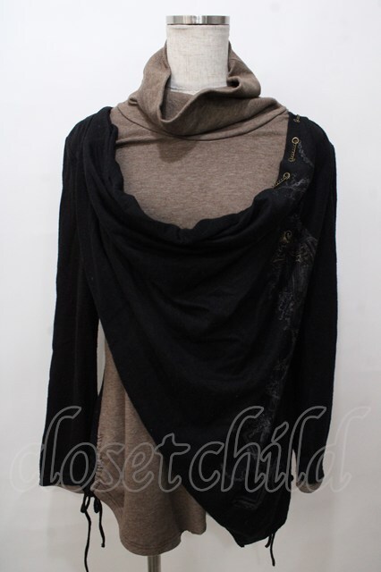 Ozz Croce / チャーム付きレイヤード風ハイネックトップス 黒×ベージュ Y-25-08-17-084-OO-TO-SZ-ZY