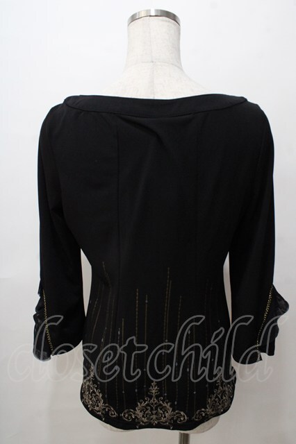 Rozen Kavalier / フロントレース裾刺繍トップス 黒 Y-25-08-17-085-OO-TO-SZ-ZY
