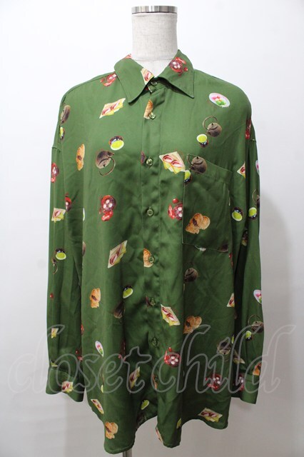 AXES-X / 和菓子プリント長袖シャツ XL グリーン Y-25-08-19-055-AX-BL-SZ-ZI