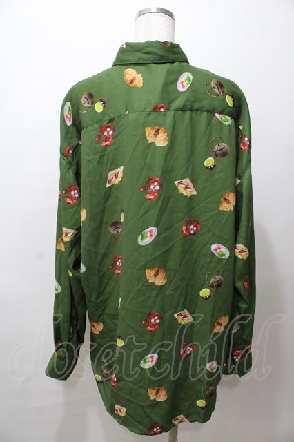 AXES-X / 和菓子プリント長袖シャツ XL グリーン Y-25-08-19-055-AX-BL-SZ-ZI