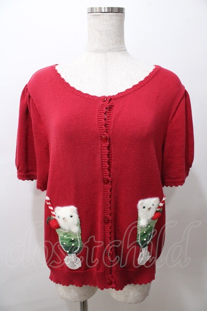 PINK HOUSE / クリームソーダモチーフニットカーディガン 赤 Y-25-08-19-061-LO-TO-SZ-ZY