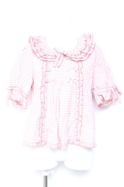 PINK HOUSE / ギンガムチェックパッチワークフリルブラウス F ピンク Y-26-01-27-032-LO-BL-SZ-ZY
