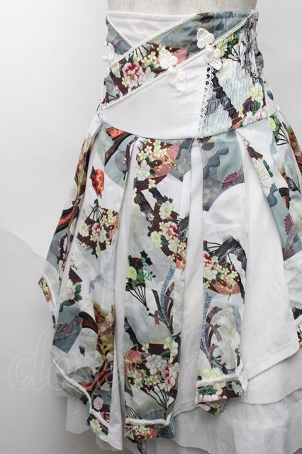 Ozz oneste / 和柄プリーツスカート 白xグリーン S-25-08-18-1021-OO-SK-AS-ZI [戻る]
