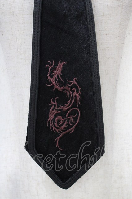 Ozz Croce / ベロア刺繍ネクタイ 黒 H-25-08-27-027-OO-ZA-KB-ZH