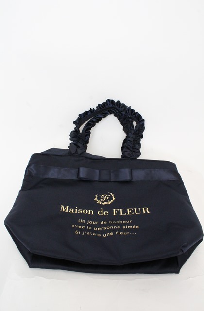 Maison de FLEUR / ブランドロゴフリルハンドルトートMバッグ ネイビー O-25-08-20-035-LO-BG-OW-ZT501