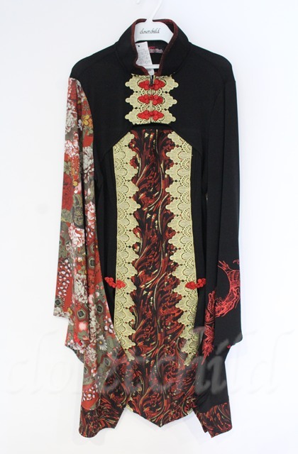 Qutie Frash / 和柄着物チュニック レッド O-25-12-03-013-QU-OP-IG-ZT068