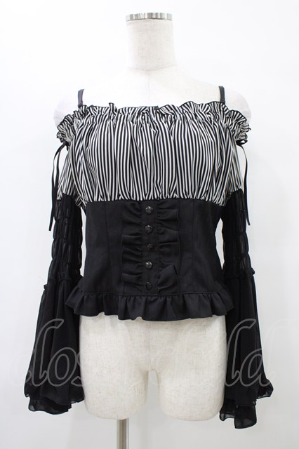 BPN / ストライプ切替オフショルトップス 黒 H-25-08-28-012-GO-TO-KB-ZH
