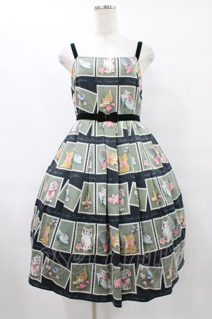 Emily Temple cute / Kitten Stamp Collectionキャミソールワンピース グリーン H-25-08-28-027-ET-OP-KB-ZH [戻る]