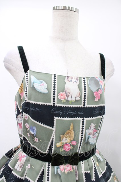 Emily Temple cute / Kitten Stamp Collectionキャミソールワンピース グリーン H-25-08-28-027-ET-OP-KB-ZH