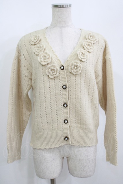 axes femme / かぎ針花モチーフニットカーデ M 生成り H-25-08-27-1049-AX-TO-NS-ZH [戻る]