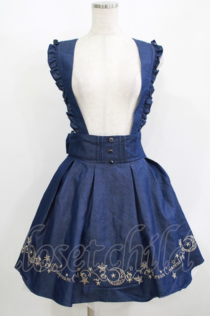 Amavel / 太サス付き星刺繍スカート Free ブルーデニム H-25-08-27-1024-CA-SK-NS-ZH [戻る]