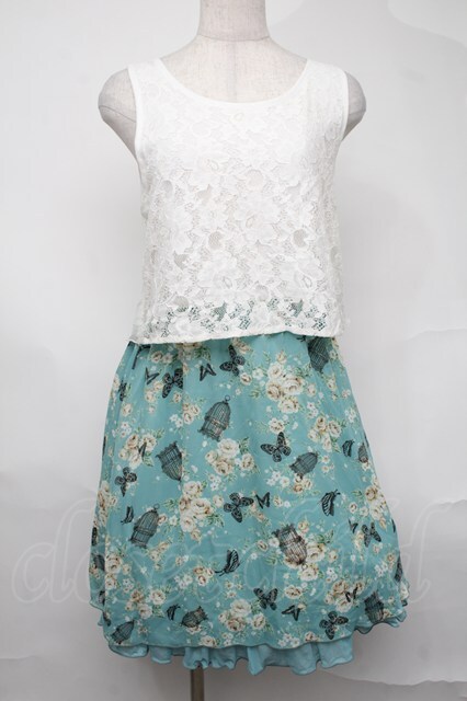 axes femme / レースxメルヘン花柄チュニ ミント S-25-08-21-1037-AX-OP-AS-ZS [戻る]
