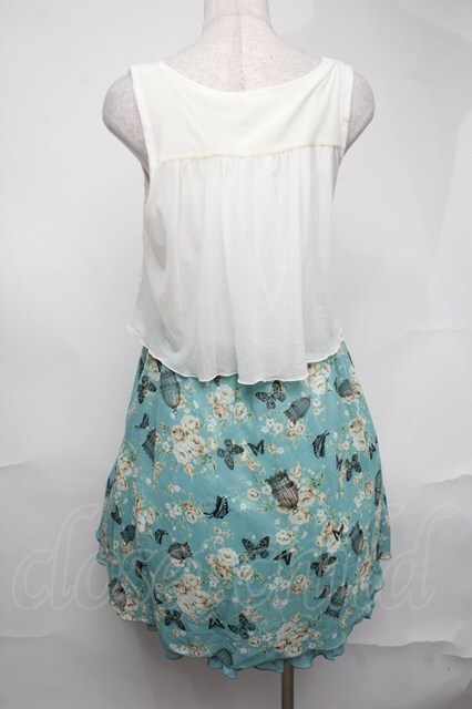 axes femme / レースxメルヘン花柄チュニ ミント S-25-08-21-1037-AX-OP-AS-ZS