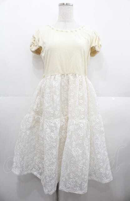 Shirley Temple / ベルベット切り替えレースワンピース 160CM アイボリー I-25-08-22-023-ET-OP-HD-ZI