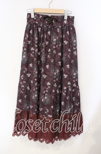axes femme / ミュルーズ染織美術館コラボ/フェザー×フラワー柄スカート M ワイン O-25-08-23-058-AX-SK-OW-ZT089