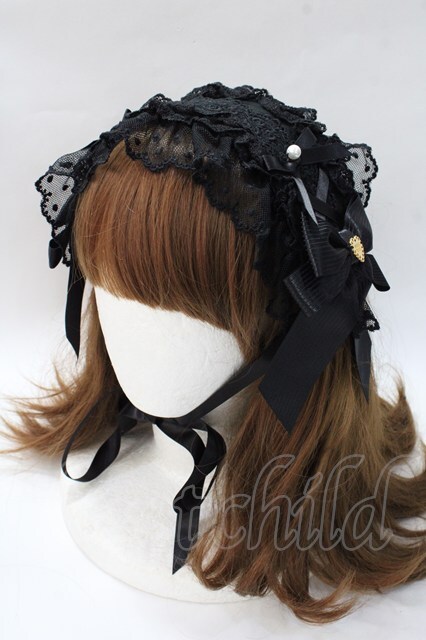 Angelic Pretty / レースハートチャームバラレースヘッドドレス 黒×黒 Y-25-08-23-039-AP-AC-SZ-ZY [戻る]