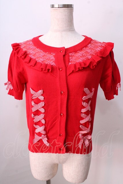 LIZ LISA / ギンガムリボンレースアップカーディガン 0 アカ Y-25-08-26-023-LO-TO-SZ-ZT027