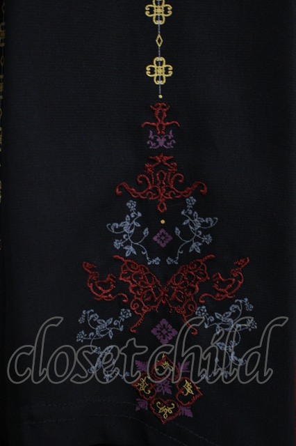 Ozz oneste / 霧蝶刺繍入り袴風プリーツスカート 黒 H-25-09-01-011-OO-SK-KB-ZH